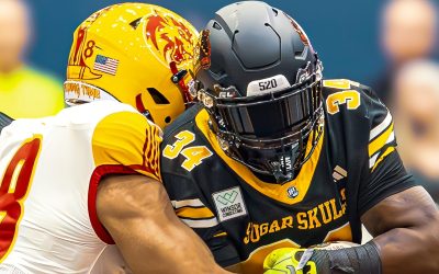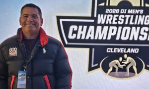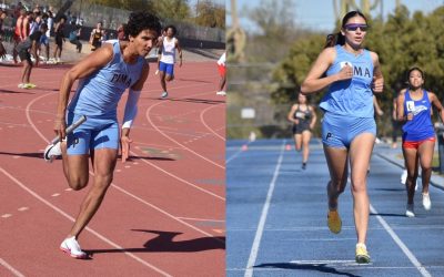 AllSportsTucson.com’s Javier Morales and Jet Sports Training owner Bobby Rodriguez interview Mica Mountain coach Jay Campos and his players Riley Carson, Broden Schmidt and Jaidyn Crist ahead of the Thunderbolts’ 4A championship game with Phoenix Arcadia.