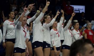 The freshman was also named to the all-conference team as well as the all-freshman team. She is also the first Arizona freshman to be named all-Pac-12 since Glass in 2002. Junior middle blocker Merle Weidt was named all-Pac-12 honorable mention.