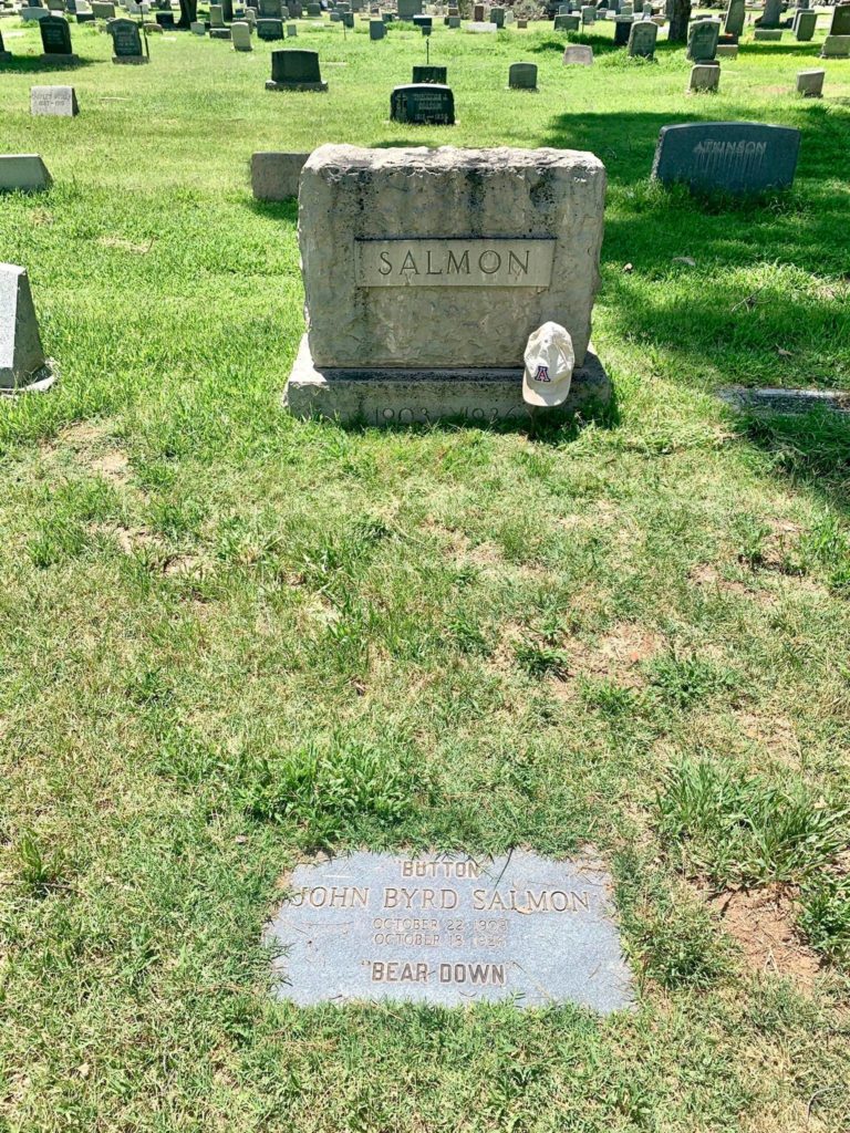 While driving back from Phoenix after a game in 1926, Salmon’s Ford Model T flipped into a ravine near the Gila River on Arizona Route 79, pinning him under the wreckage. He sustained severe spinal cord injuries and he passed away at the Southern Methodist Hospital which is currently the Castle Apartments on 721 E. Adams on Oct. 18, 14 days after his accident.