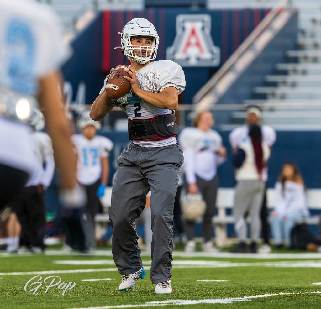 Mica Mountain senior QB Jayden Thoreson has passed for 1,558 yards after compiling 2,304 last season but Thoreson has played mostly clean with only two interceptions and 26 touchdowns. He has completed 108 of 194 pass attempts. … In the last two playoff wins over Phoenix Thunderbird and Yuma Catholic, Thoreson was a combined 22 of 32 pass attempts for 354 yards with five touchdowns and no interceptions. … Leading returning RB Conner Hangartner suffered a season-ending knee injury in the opener Aug. 30 against Poston Butte. Hangartner, an inspirational leader, has been in uniform against Thunderbird and Yuma Catholic and entered when the Thunderbolts went into Victory Formation in each game. … RB Josiah Thornwell has stepped up to gain 881 yards on 129 carries with 13 touchdowns. … RB Jordan Perry came on strong last week against Yuma Catholic. A speedster, he gained 105 yards on 13 carries, giving him 577 yards on 92 carries with five touchdowns this season. … TE Jimmy Leon has become Thoreson’s top target. He leads the Thunderbolts with 399 yards on 28 receptions with 14 touchdowns. His receiving numbers in Mica Mountain’s three playoff wins: 134 yards on nine receptions with five touchdowns. Thoreson’s top wideout targets are Alex Palma (17 catches for 229 yards), Jake Johnson (16 for 178), Riley Carson (15 for 377) and Thornwell (12 for 75). … The Thunderbolts average 38.6 points a game.