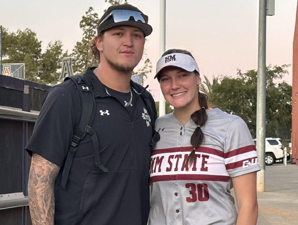 Her return to playing this year at New Mexico State, taking advantage of being with her brother and playing closer to home, has been productive. Playing first base, she is batting .353 with 14 doubles, 12 home runs and 43 RBIs.