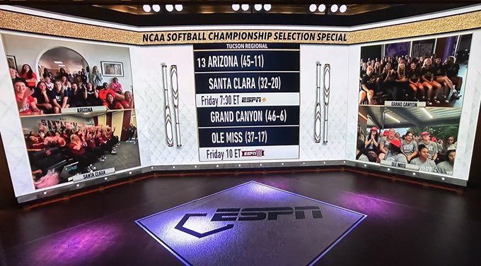 After the Wildcats (45-11) play the Broncos (32-20) on ESPN+, Western Athletic Conference champ Grand Canyon (46-6) will face Ole Miss (37-17) of the SEC at 7 p.m. on ESPNU.