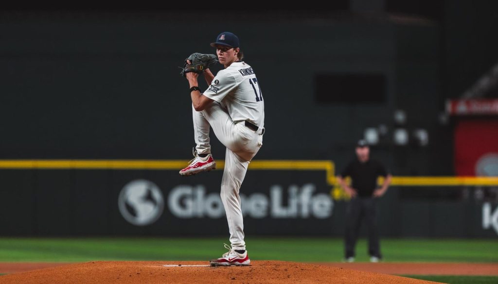 No. 4 Arizona downed No. 12 BYU 4-1 Thursday morning in its first game at the Phillips 66 Big 12 Baseball Championship behind the pitching of Walden Grove graduate Owen Kramkowski and back-to-back home runs in the first inning by Salpointe alum Mason White and Adonys Guzman at Globe Life Field in Arlington, Texas.