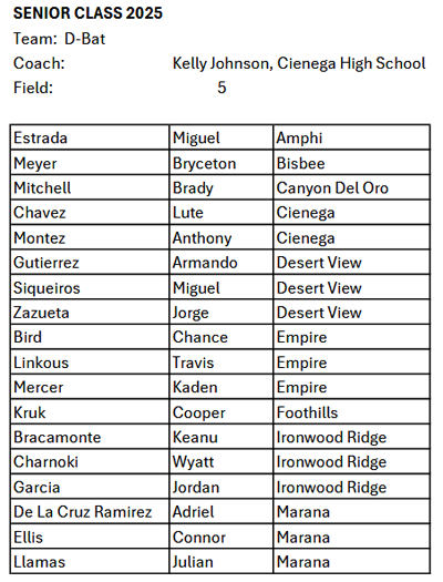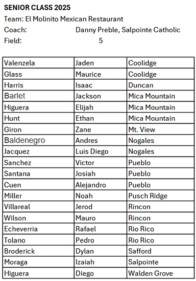 Class 2025: FIELD 5: El Molinito (Gold) vs D-Bat (Black)
