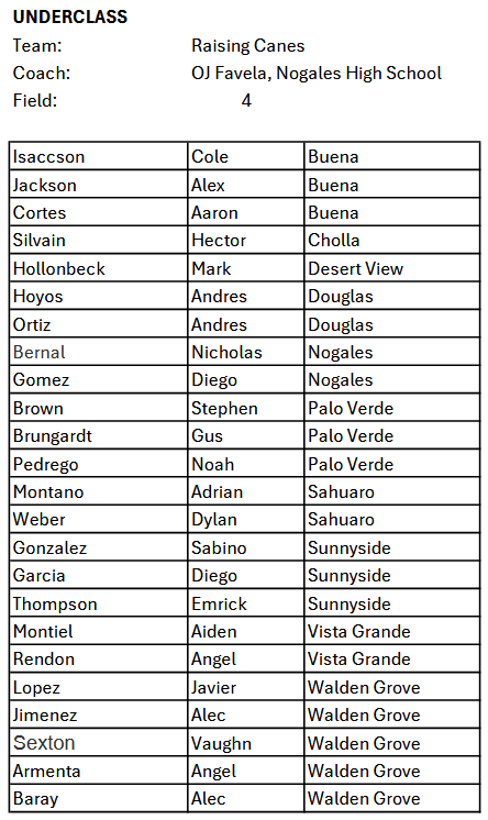 Underclass: FIELD 4: Raising Canes (Gold) vs El Charro (Black)