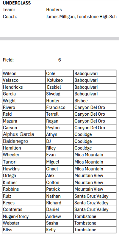 Underclass: FIELD 6: Uncle Bob’s (Gold) vs Hooters (Black)