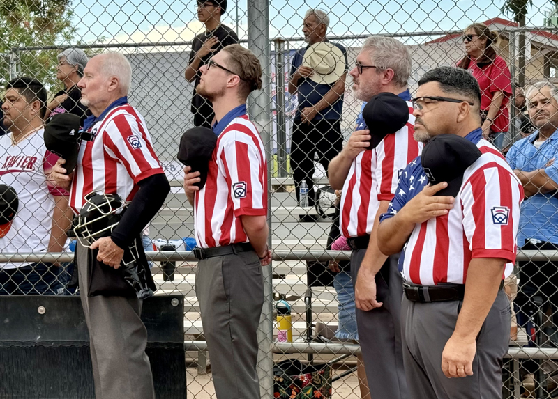 Hall worked the plate, Joey Traylor was at first base, Josh DeGraeve took second and his father Steve DeGraeve was at third for Hall’s final game. Traylor works District 7 (Mesa) and he will be part of the Little League Baseball crew at the West Regional in San Bernardino and the DeGraeve duo will be working the Little League Softball West Region also in San Bernardino.