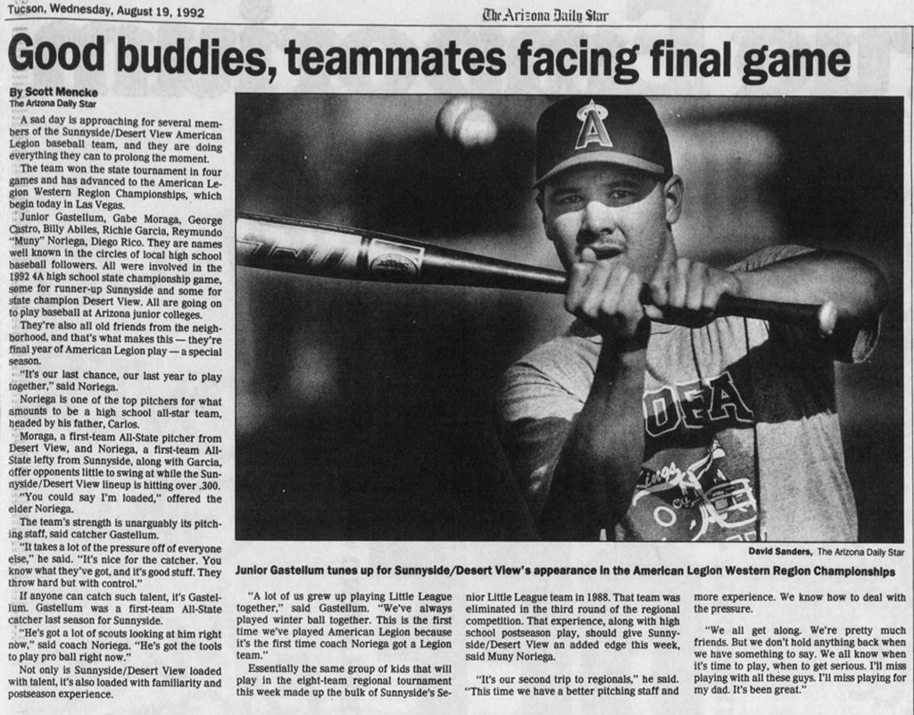 Former Sunnyside standout Gabe Moraga is the current coach of Post 73 Crush. (Arizona Daily Star 1992)