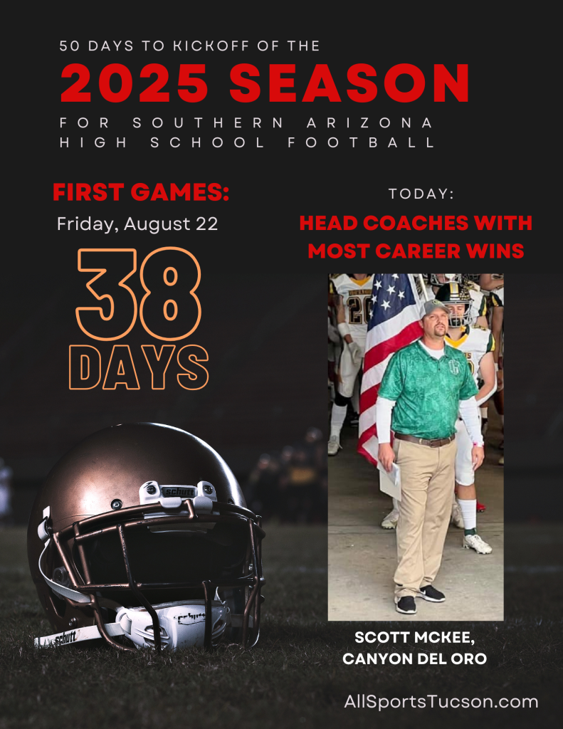 ALLSPORTSTUCSON.COM CONTINUES ITS 50 POSTS FOR THE 50-DAY COUNTDOWN TO THE 2025 SEASON THAT STARTS AUG. 22 FOR SOME SCHOOLS WITH A LOOK AT COACHES WITH THE MOST WINS IN THEIR CAREERS. CATCH UP WITH ALL THE POSTS BY CLICKING HERE.
