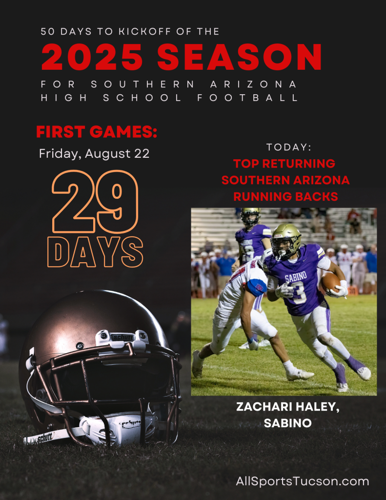 ALLSPORTSTUCSON.COM CONTINUES ITS 50 POSTS FOR THE 50-DAY COUNTDOWN TO THE 2025 SEASON THAT STARTS AUG. 22 FOR SOME SCHOOLS WITH A LOOK AT THE TOP RETURNING RUNNING BACKS AS DETERMINED BY COACHES. CATCH UP WITH ALL THE POSTS BY CLICKING HERE.