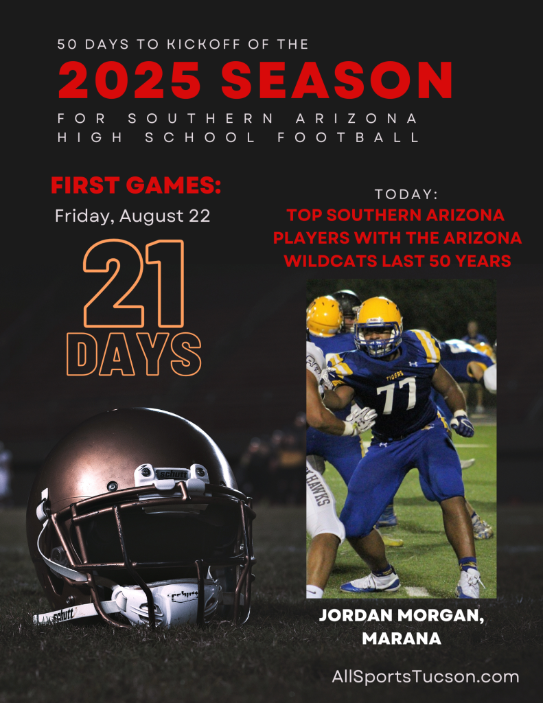 ALLSPORTSTUCSON.COM CONTINUES ITS 50 POSTS FOR THE 50-DAY COUNTDOWN TO THE 2025 SEASON THAT STARTS AUG. 22 FOR SOME SCHOOLS WITH A LOOK AT THE TOP LOCAL PLAYERS WHO WENT ON TO PLAY AT ARIZONA. CATCH UP WITH ALL THE POSTS BY CLICKING HERE.