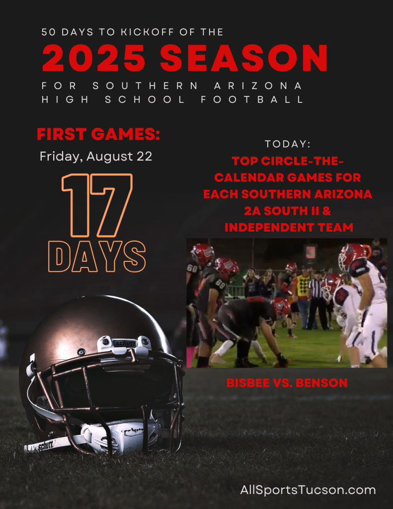 ALLSPORTSTUCSON.COM CONTINUES ITS 50 POSTS FOR THE 50-DAY COUNTDOWN TO THE 2025 SEASON THAT STARTS AUG. 22 FOR SOME SOUTHERN ARIZONA SCHOOLS WITH A LOOK AT THE TOP 2A SOUTH II AND INDEPENDENT GAMES TO WATCH THIS SEASON FOR EACH PROGRAM. CATCH UP WITH ALL THE POSTS BY CLICKING HERE.