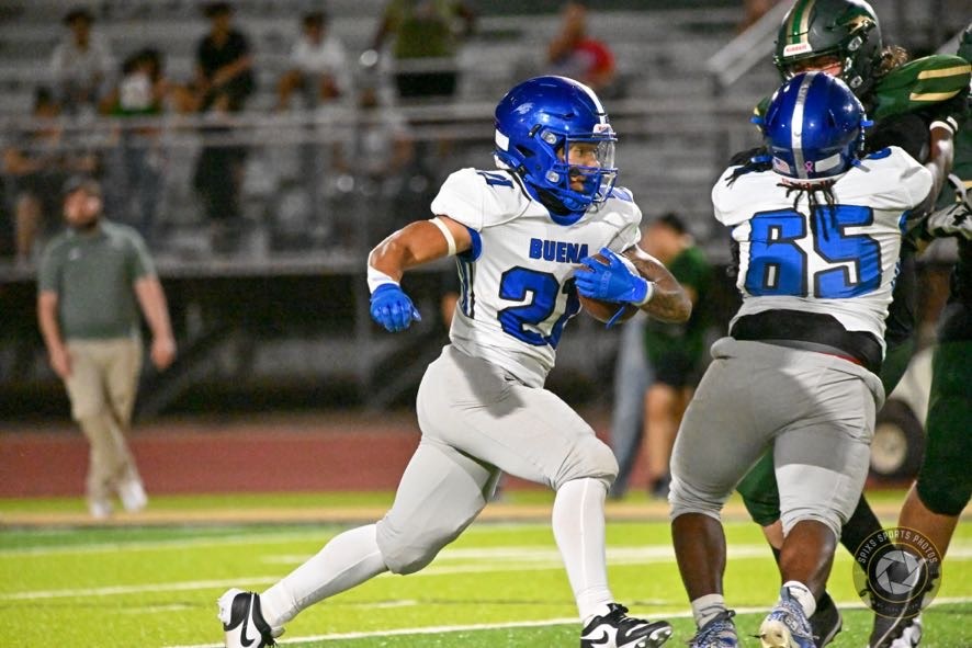 Buena’s defense started taking its foot off the gas a bit, allowing Skyline to reach the end zone on a 9-yard run by Caleb Wheeler with 8:28 remaining in the game. The kick was good, cutting Buena’s lead to 42-20.