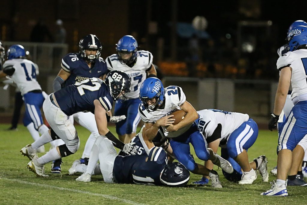 Pusch Ridge’s defense swarmed to the ball, limiting Catalina Foothills to only 212 yards of total offense, in a 35-0 win (Raina Ramirez/Special to AllSportsTucson.com)