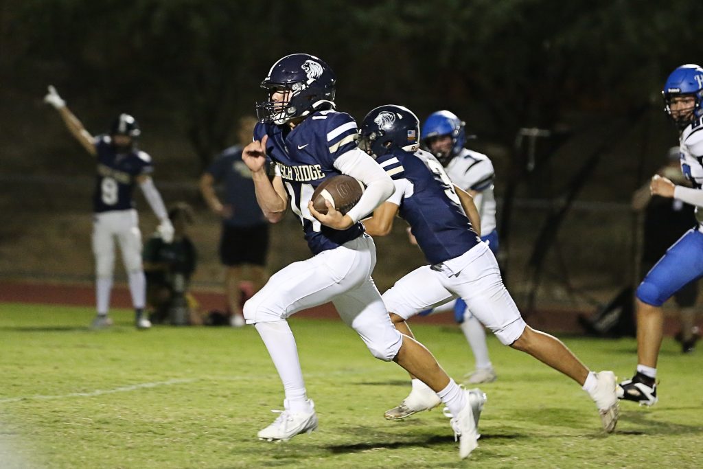 Pusch Ridge junior QB Race Pinneo rushed for 121 yards and passed for 112 in the Lions’ 35-0 win over Catalina Foothills (Raina Ramirez/Special to AllSportsTucson.com)