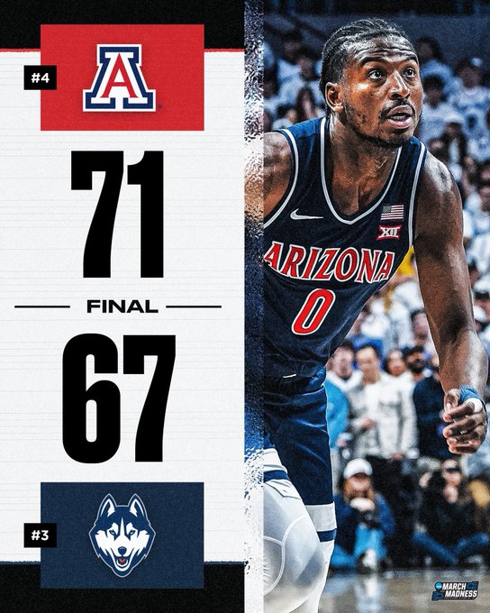 And now No. 3 Connecticut in the books after UA took care of the Huskies 71-67 in Storrs, Conn.