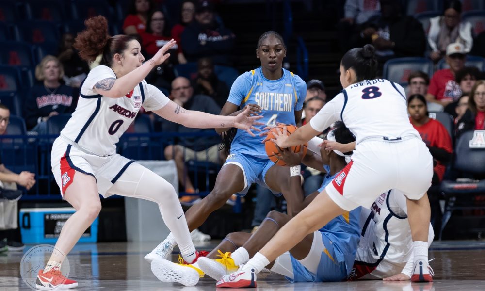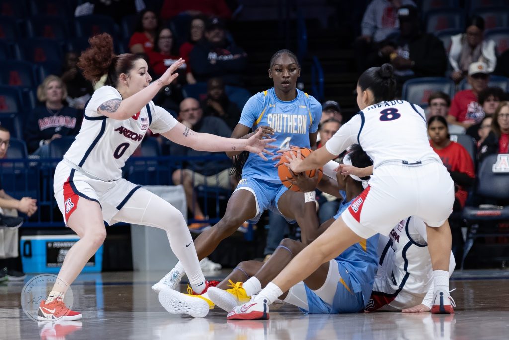 On trying to adjust to Southern’s style of play, Arizona forward Nora Francois said, “I think we were anticipating them being handsy, anticipating like them clogging the paint, helping from anywhere but we weren’t able to settle ourselves and we were very much rattled by that.”