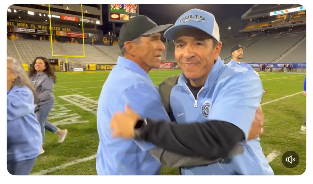 Mica Mountain coach Jay Campos congratulated by his father Eddie (Andy Morales/AllSportsTucson.com)