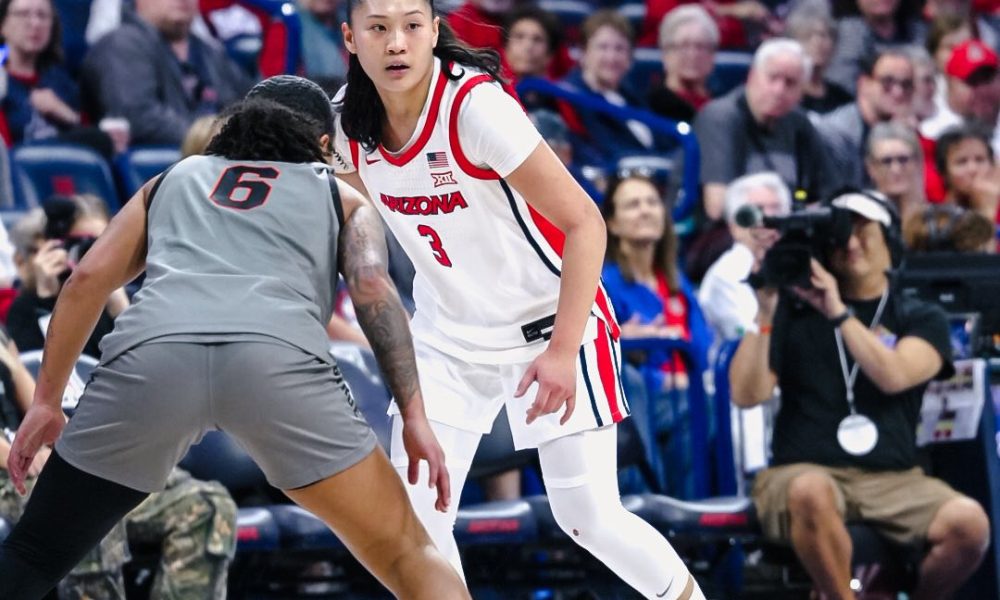 “I thought we showed glimpses of being able to execute a game plan and play really, really hard within that game plan,” Arizona coach Becky Burke said. “Glimpses are not going to be enough for this year’s team. It’s going to take a perfect storm of us putting together a 40-minute game, which again, we did not do tonight but you know the glimpses are encouraging and the moments where we show that we can play high level basketball. We’ve just got to continue to try to build off of that.