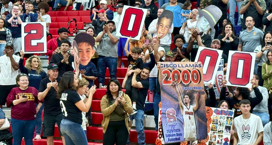 The Llamas family celebrates Cisco Llamas breaking 2,000 career points. (Andy Morales/AllSportsTucson)