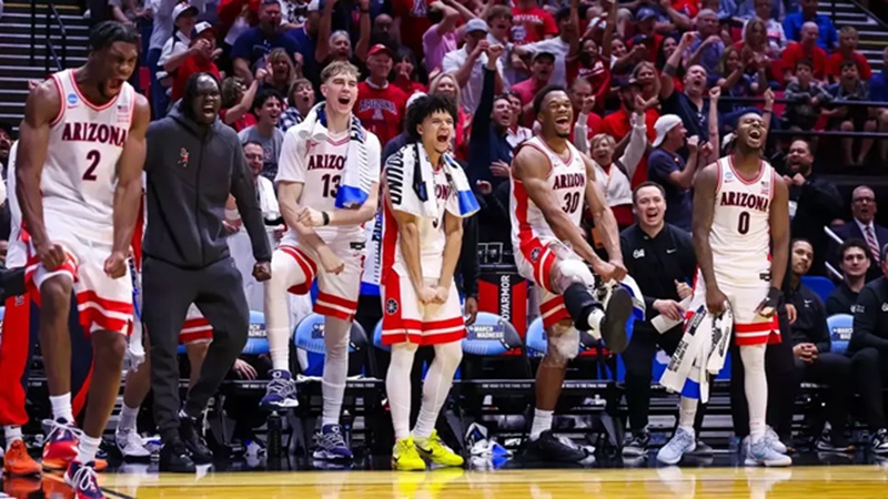 Arizona celebrates late in its blowout win over Long Island in the first round of the NCAA Tournament (Arizona Athletics)