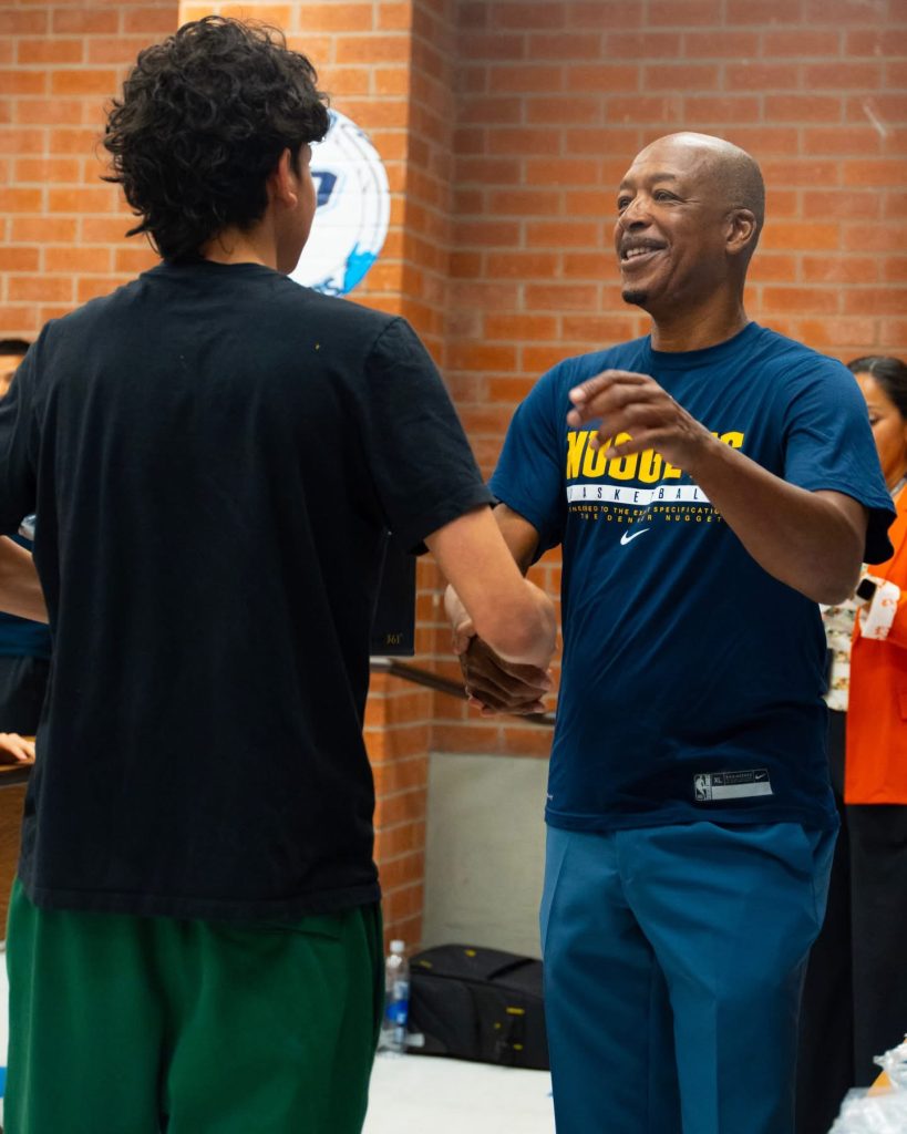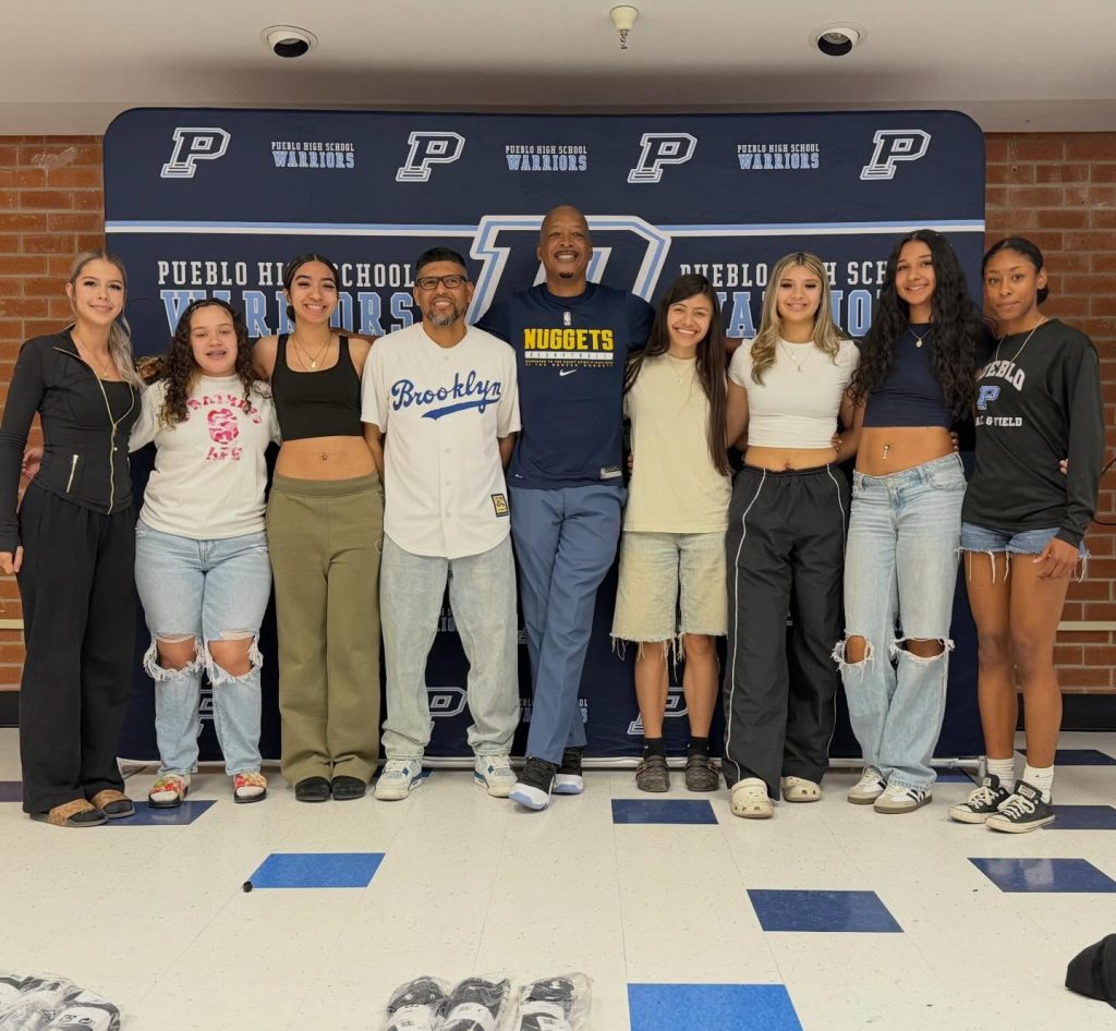 Pueblo High School basketball legend Lafayette “Fat” Lever presented to the boys and girls teams at his alma mater this week Aaron Gordon 361 Sport Official shoes, a continuous effort by him to give back to the community.