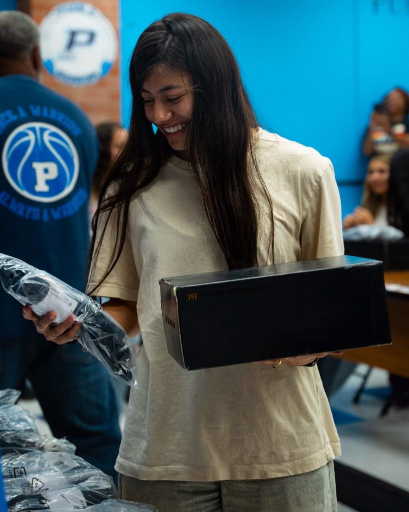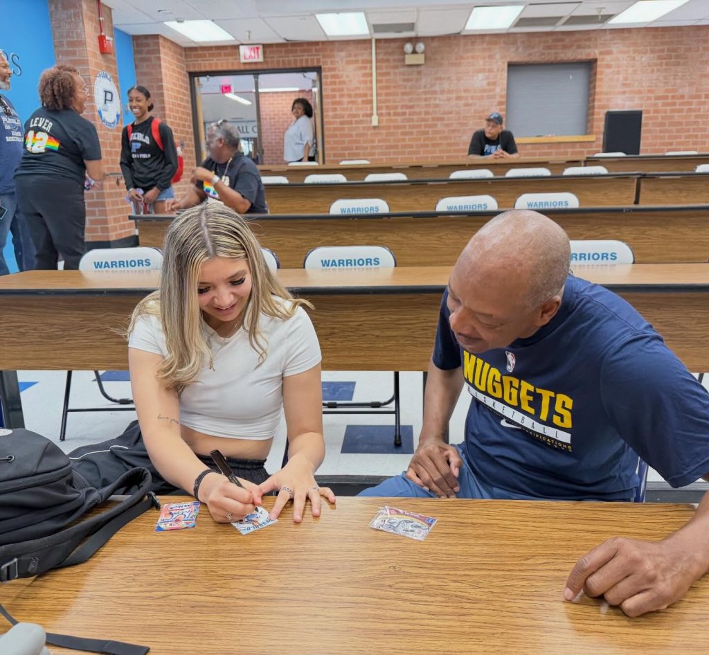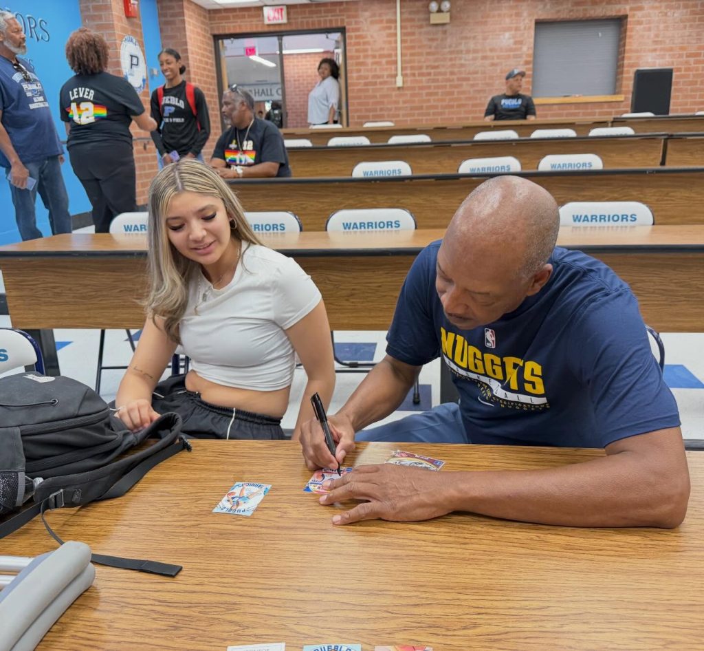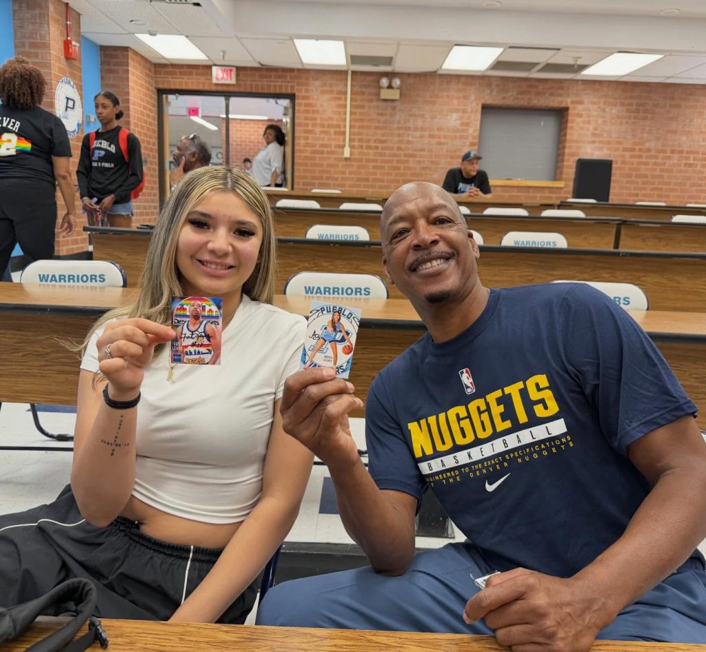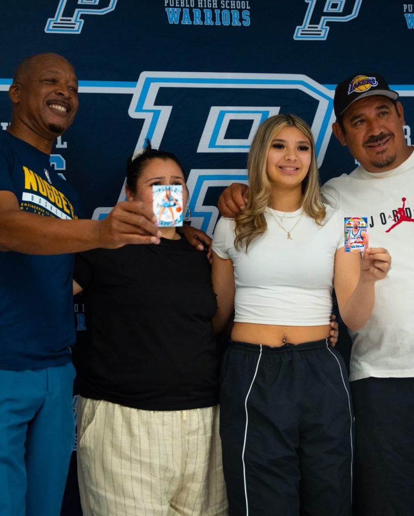 Lever and Pueblo Class of 2026 standout America Cazares, who broke the state’s career scoring record this season, also exchanged player cards with autographs.