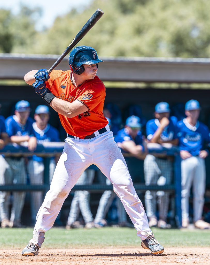 In the win over Chandler-Gilbert, sophomore Mike Jones (Canyon del Oro) hit a shot to center field that scored sophomores Owen Wade and Matt MacDonald to make it 14-6.