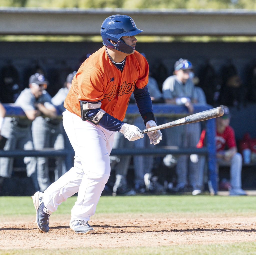 Sophomore Jackson Glueck hit an RBI single to score freshman Adriel Figueroa-Brito. Two batters later, Lorta hit a two-run double to drive in Glueck and Kruk to cut the lead to 8-7. Lorta tied the game when he scored on sophomore Matt MacDonald’s RBI triple. Sophomore Mike Jones (Canyon del Oro) put the Aztecs ahead with an RBI single that scored MacDonald.