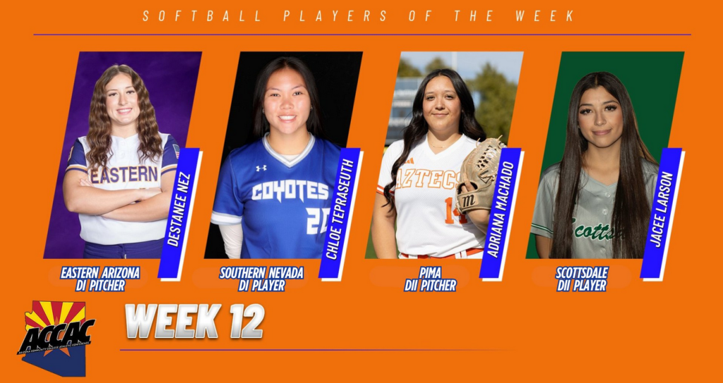 Former Canyon del Oro standout Destanee Nez was named ACCAC DI Pitcher of the Week. Nez went 3-0 across three appearances, totaling 14 innings while allowing three earned runs on 11 hits. She struck out 12 to lead Eastern Arizona to a three wins over Yavapai.
