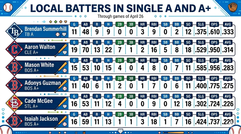 C-1B Nate Baez (Ironwood Ridge), Red Sox AA, 2-run HR (second HR in Double-A and overall this season)