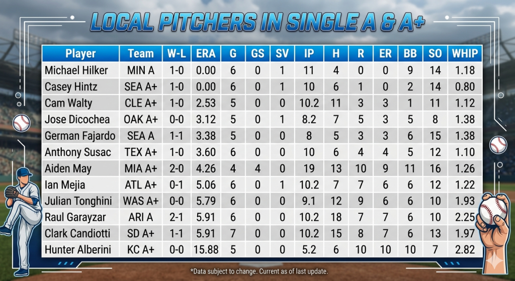 | Aiden May | Pima/Arizona | RHP | A+ | Beloit (Wis.) | MIA |