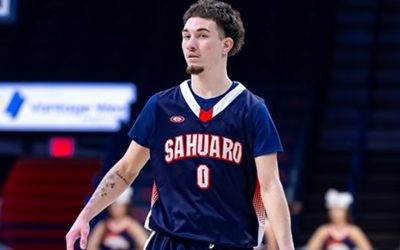 AllSportsTucson.comโs Javier Morales and Jet Sports Training owner Bobby Rodriguez interview Mica Mountain coach Jay Campos and his players ย Riley Carson, Broden Schmidt and Jaidyn Crist ahead of the Thunderboltsโ 4A championship game with Phoenix Arcadia.